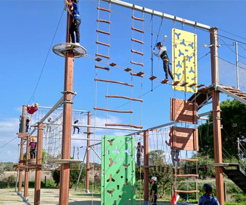 En nuestros Parques Multiaventuras la diversión no tiene límites. Disfruta de un entorno natural único como es el Parque Natural Bahía de Cádiz, mientras te lanzas por tirolinas espectaculares y cruzas puentes colgantes que pondrán a prueba tu equilibrio.